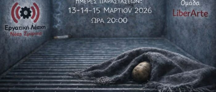«Εκεί που φυτρώνουν παπαρούνες» Μία θεατρική παράσταση από την Ομάδα LiberArte Κυριακή 19/11 20:00 Η θεατρική ομάδα LiberArte της Εργατικής Λέσχης Ν. Σμύρνης παρουσιάζει την πρωτότυπη παράσταση «Εκεί που φυτρώνουν… read more →