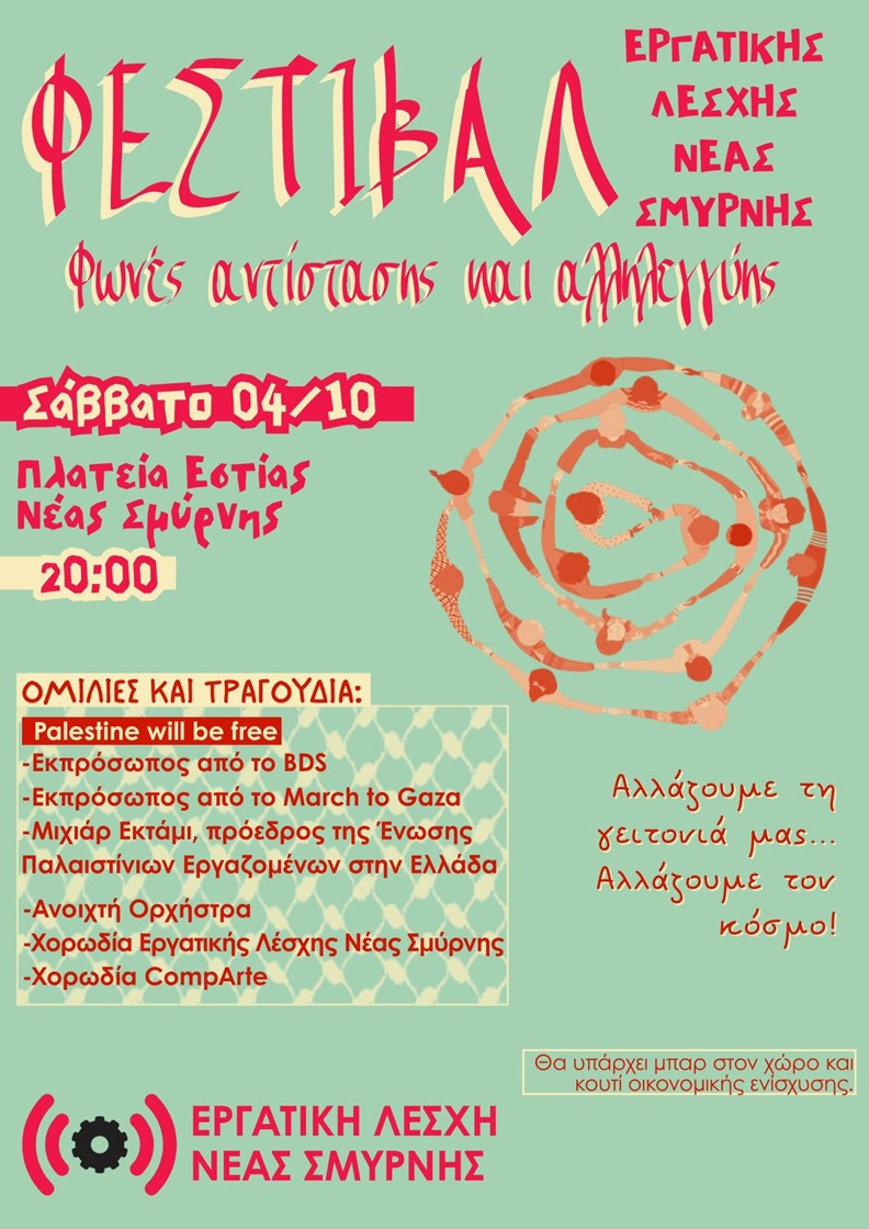 Μια ξεχωριστή βραδιά το Σάββατο 04/10/2025 στη Νέα Σμύρνη! Η Εργατική Λέσχη Νέας Σμύρνης διοργάνωσε το 1ο της Φεστιβάλ με τίτλο Φωνές Αντίστασης και Αλληλεγγύης.