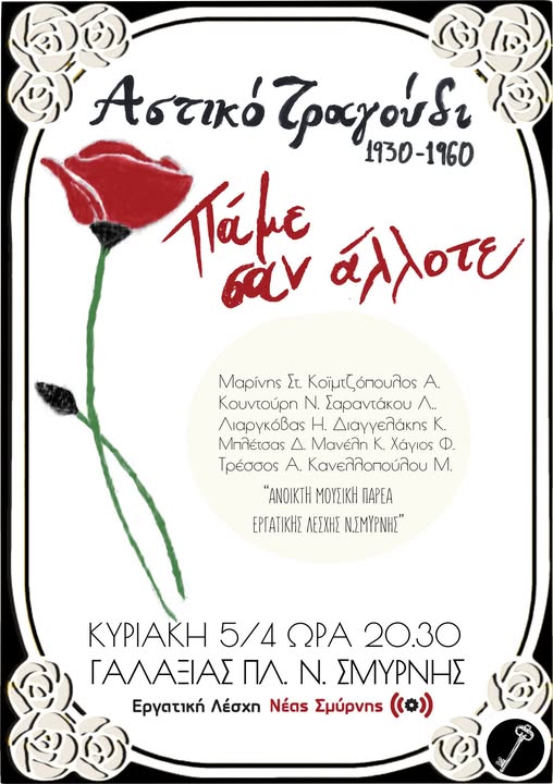 Κυριακή 05/04/2026 στις 8.30 μ.μ. στον πολιτιστικό χώρο “ΓΑΛΑΞΙΑ” στην πλατεία Νέας Σμύρνης.